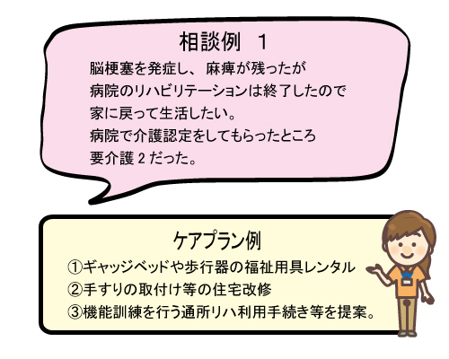 介護保険制度を利用した在宅での生活ができるようなケアプラン(※2)を作成いたします。